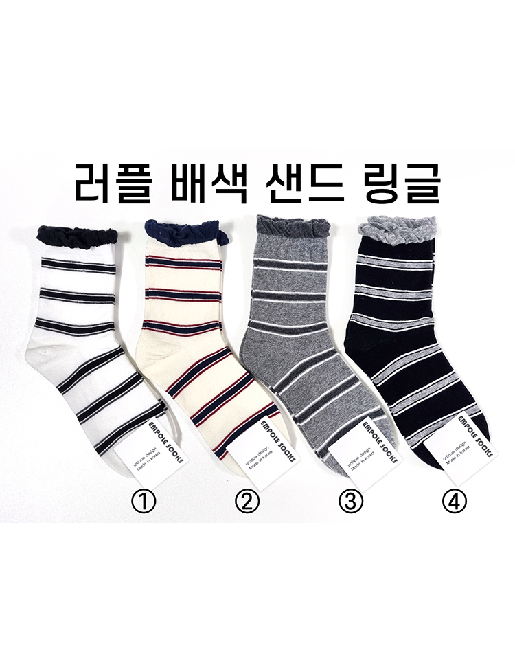 E) 러플 배색 샌드 링글 양말 (10켤레)