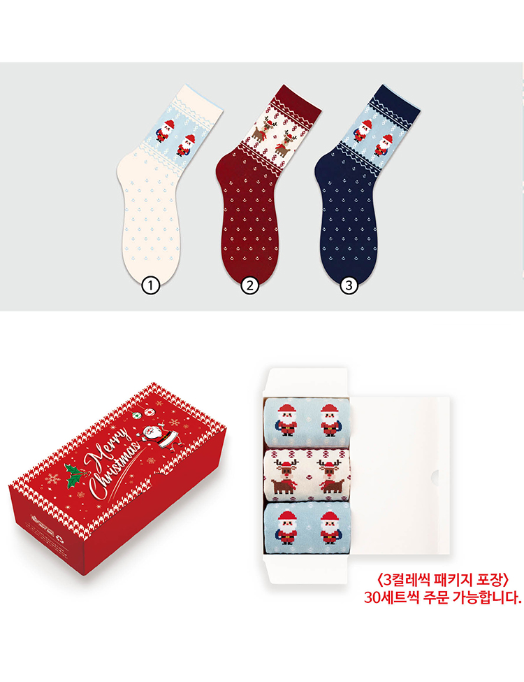 큐티 크리스마스 양말 3P 선물세트 (30세트)